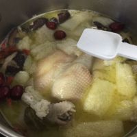 9.将鸡汤熬好,用筷子轻易戳入鸡腿肉中。