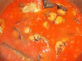 9.倒入鱼块翻炒几下,用高压锅大火烧开变成小火,十五分钟关火,(我没加水,因为西红柿放的多,直接用番茄汁来炖味道更鲜)如果加水压力锅炖的时间可延长