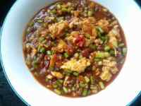 4.蛋煎好加入姜蒜苔西红柿丁煸炒