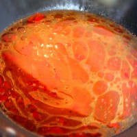 将鱼肉一片一片的放入锅中。(千万不要搅动,如需要,只要轻轻晃动几下锅即可)