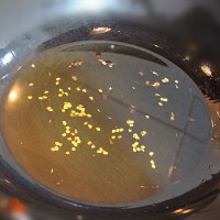 将鱼骨放入锅内,大火烧开后转小火炖10分钟。(这个时候可以尝一下鱼汤的味道,然后根据自己的口味选择要不要放盐)鱼骨炖好后捞到装有黄豆芽的大碗中
