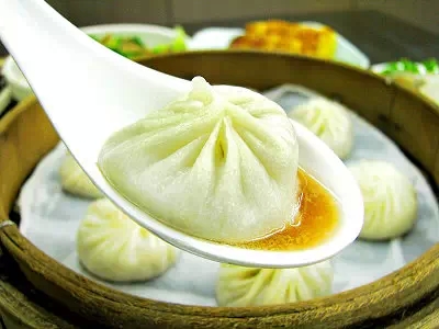 5)点缀上蟹膏,做若干包子生坯;生坯摆放小笼内冷水上笼;大火蒸10分钟即可。