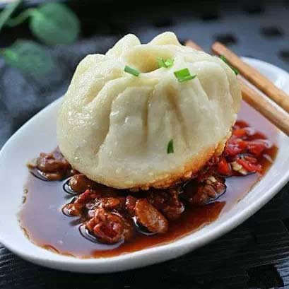 10)包成圆形包子状,收口朝下;蒸锅注水烧上汽,将包子放入锅内;盖上锅盖,大火蒸15分钟左右即可。