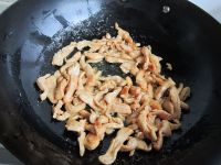 4.热锅凉油,油热7成下鸡丝