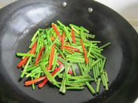 小贴士 鸡肉翻炒的时候最容易沾锅,油温不能太高 蒜薹也不可就炒,断生即可