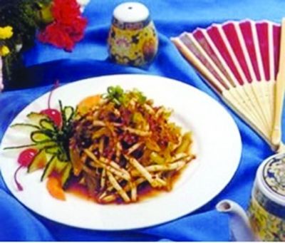 配料:莴笋250克,大蒜、葱各10克,姜、食盐、酱油、醋、味精、香油各适量。